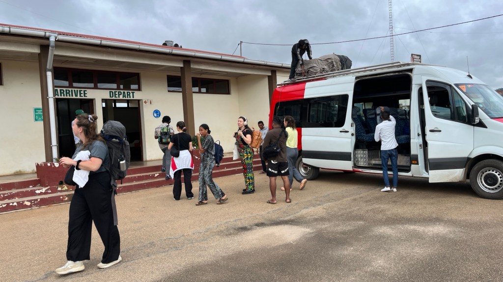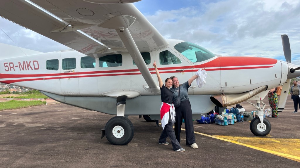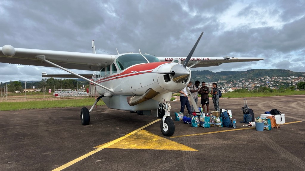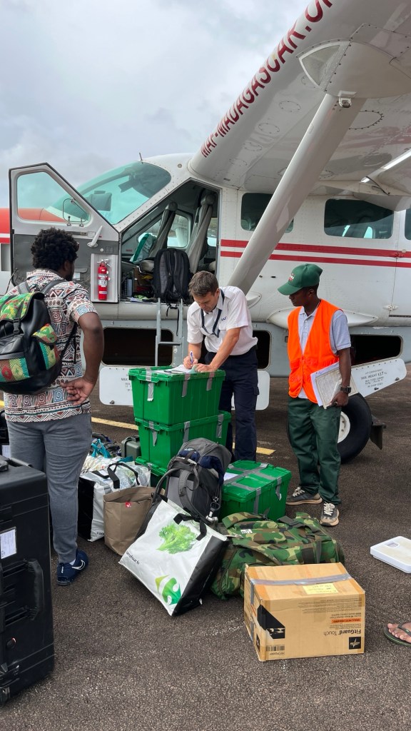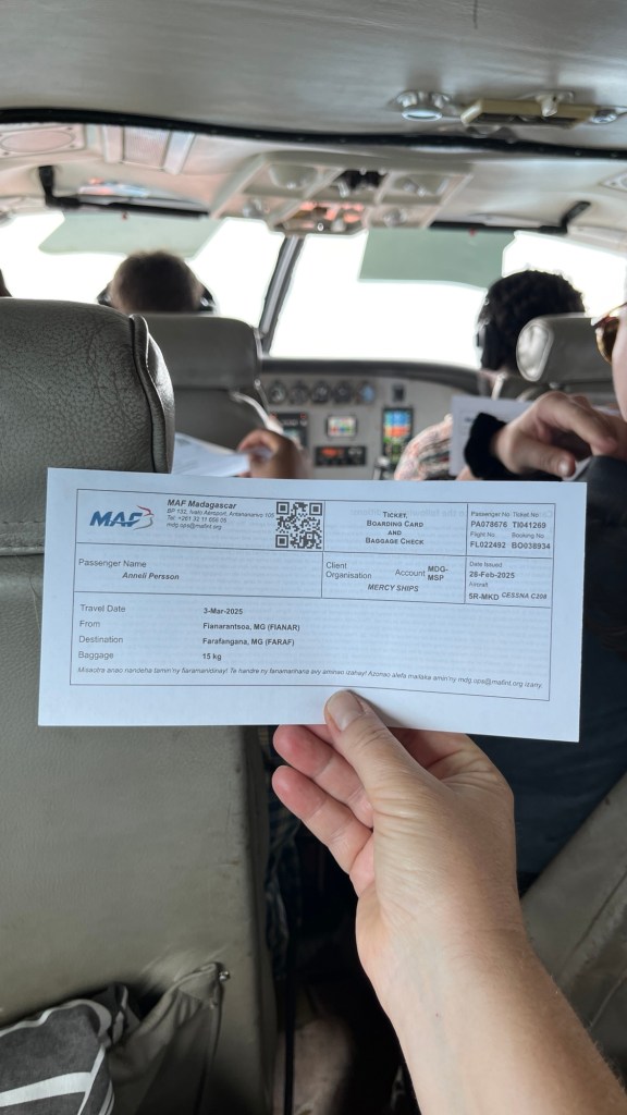 Allt vägdes in och jag vägdes in tillsammans med min konken ryggsäck på ryggen.. När det mesta var packat i planet så var det två större lådor som vi fick lämna.. men det var ok. De behövdes inte dessa veckor utan flögs senare till huvudstaden Tana, där Mercy Ships Madagaskar har vårt kontor.