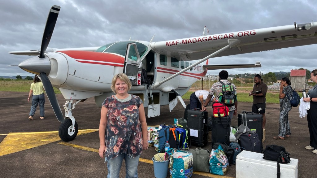 Piloten Patrik mötte oss i Fianarantsoa flygplats och tog emot oss med ett varmt leende. Han har jobbat i Madagaskar i 16 år med sin familj. Rätt person på rätt plats.
