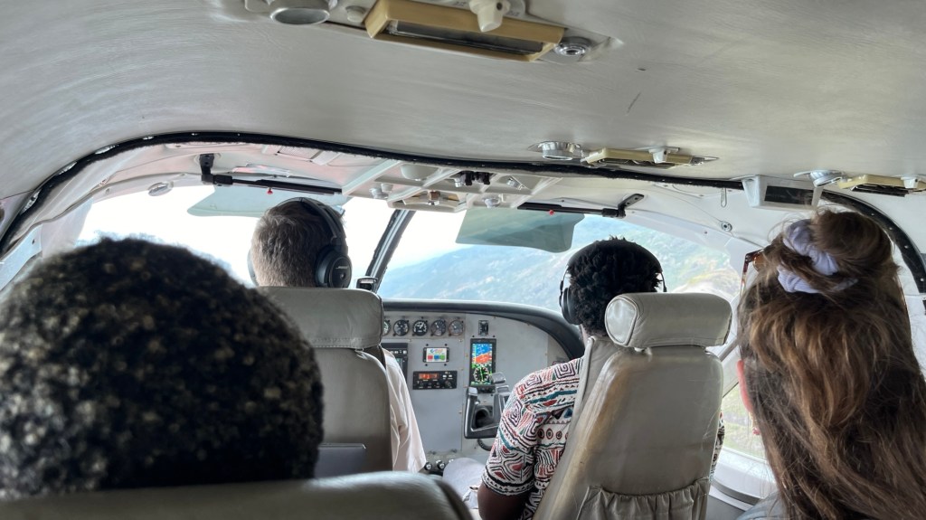 Vi lyfte och hela resan var en stor fröjd. Det var en fridsam resa, det blev så tydligt att vi satt i ett fredsplan med sikte på hopp. Jag njöt otroligt av utsikten och den fantastiska natur som jag fick se från luften. Några berg är höga här och ibland var det kort distans till bergstopparna som vi flög över. Det var en fin dag men perfekt utsikt, så glad att äntligen få flyga med MAF.