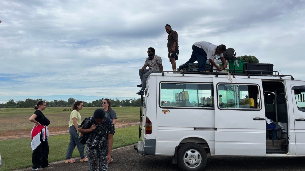 Den totala vikt som kunde tas ombord, inklusive personer, var 4 ton. För att vi skulle få med oss allt som vi behövde på screeningen, fick vi väga alla väskor, medicin och vår vikt var också med i beräkningen. Vi fick veta före resan att den totala vikt för personliga saker var 12kg. Jag har nog aldrig packat så lite i väskan som nu och ändå känns det som att jag klarar jag mig bra.. en regn jacka, en hoody, tre toppar, två byxor, 7 trosor och några sockar. Tennis skor, Croccs och ett par bättre skor, Solhatt, myggmedel och några toa saker som jag hällt i småflaskor.. Det som vägde mest var min dator, skrivplatta, externa batteri och hårddisk.