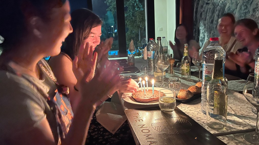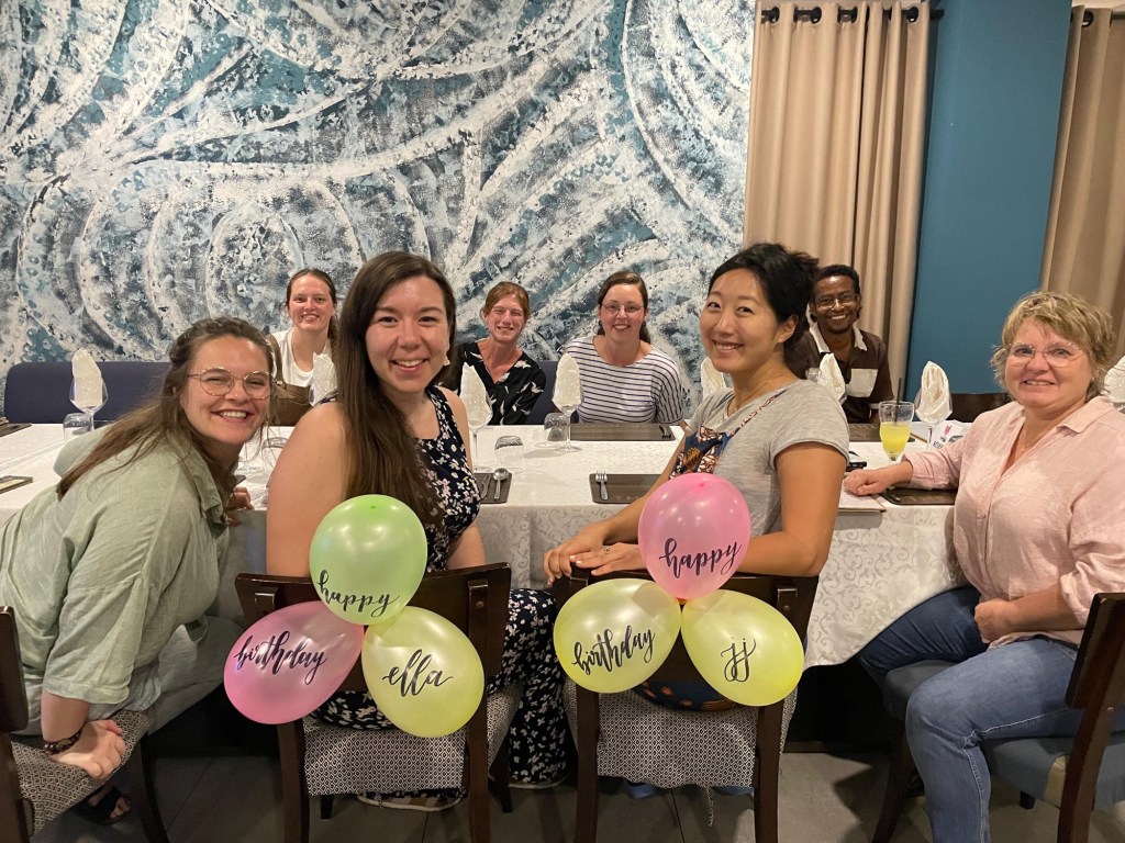 Ella och JJ i teamet hade födelsedag en av dagarna och det firade vi med lite ballonger och en Dajmtårta ifrån Sverige.