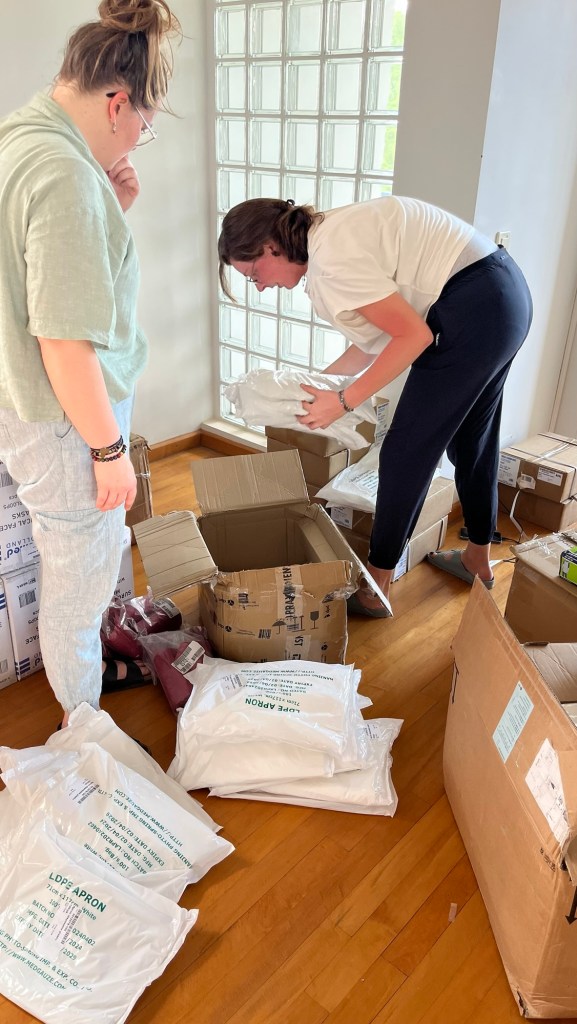 Patient selection jobbet började dag nummer två då vi fick träffa hela teamet. Vi började med att samla oss under några palmträd och vi hade en andakt tillsammans och lärde känns varandra. Efter andakten så åkte vi till Mercy Ships team-huset i Tana och packade ihop mediciner och det som vi skulle ha med oss.